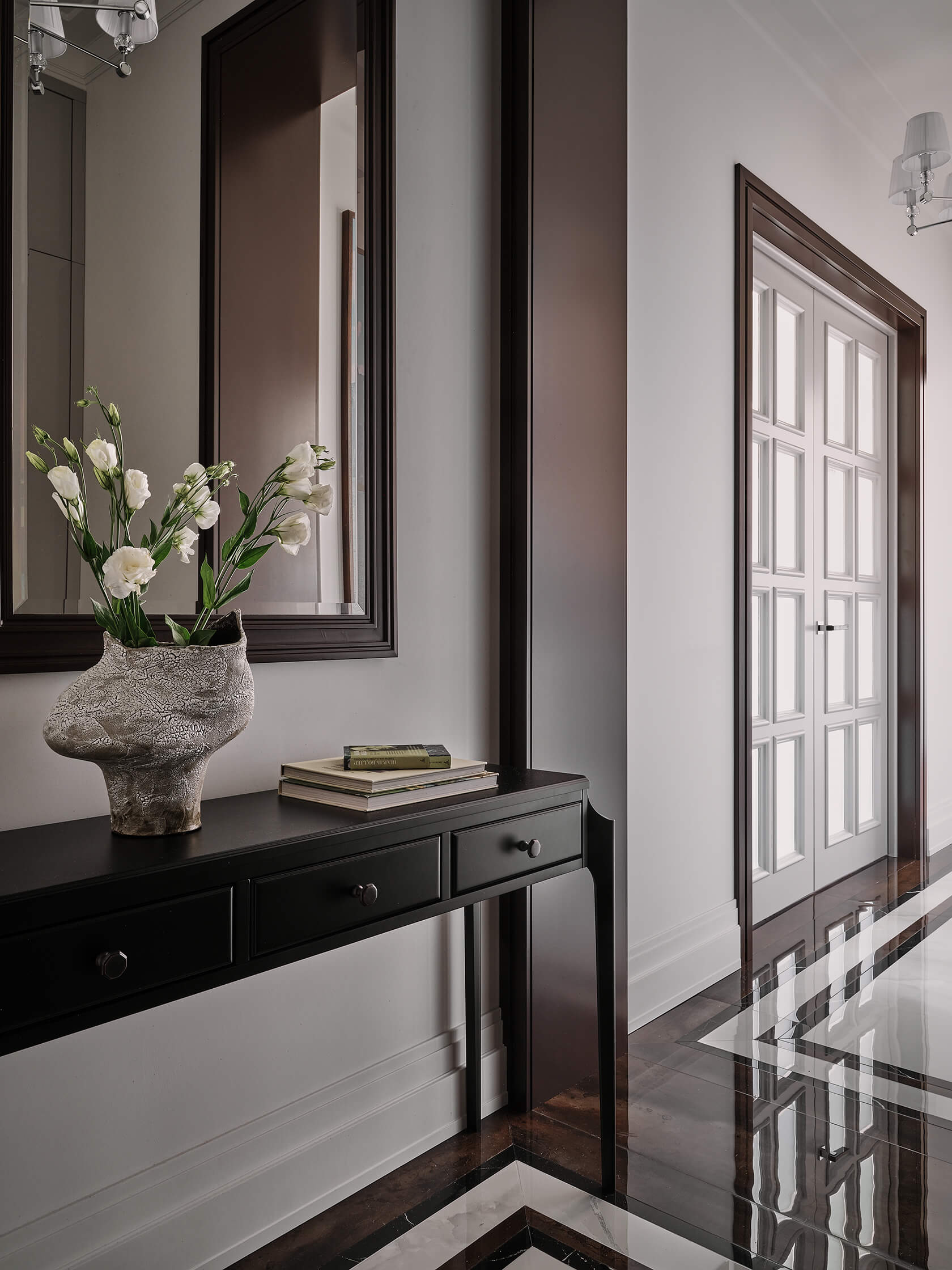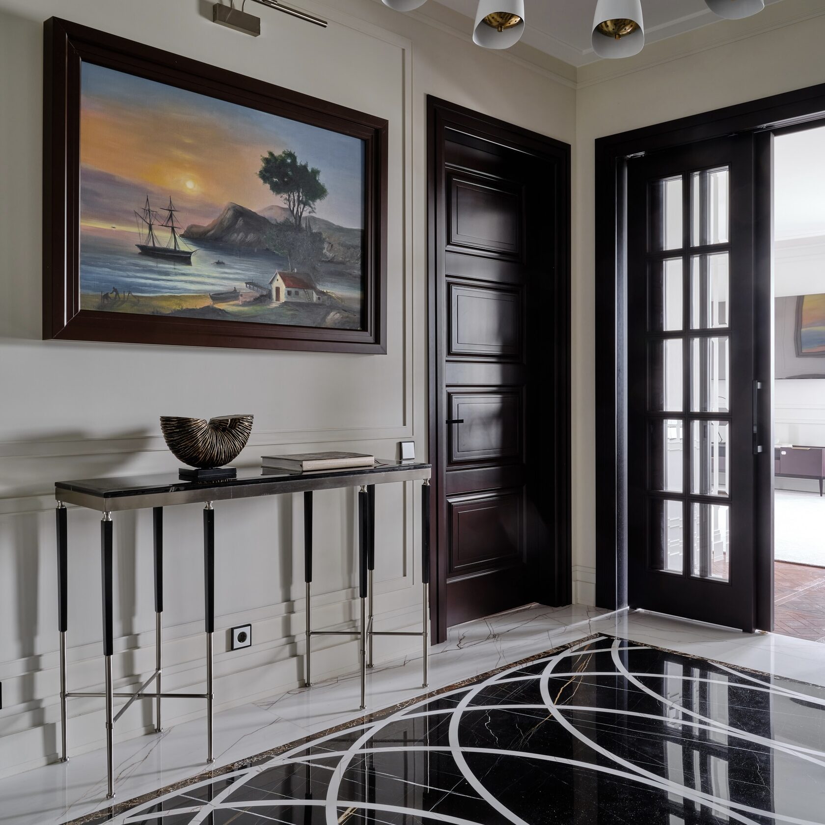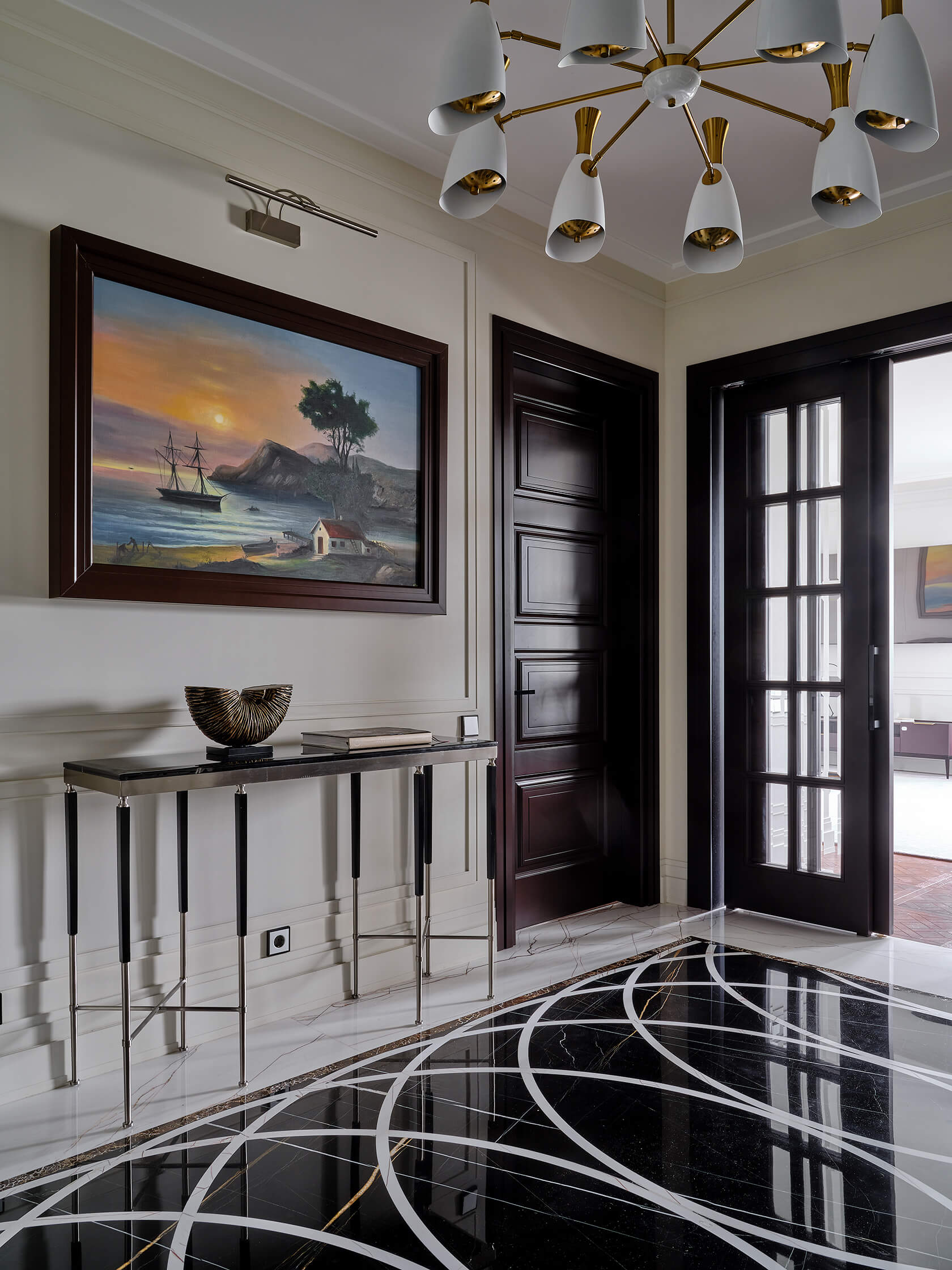 нтерьер олицетворяет сочетание классической элегантности и современного стиля. Изысканные