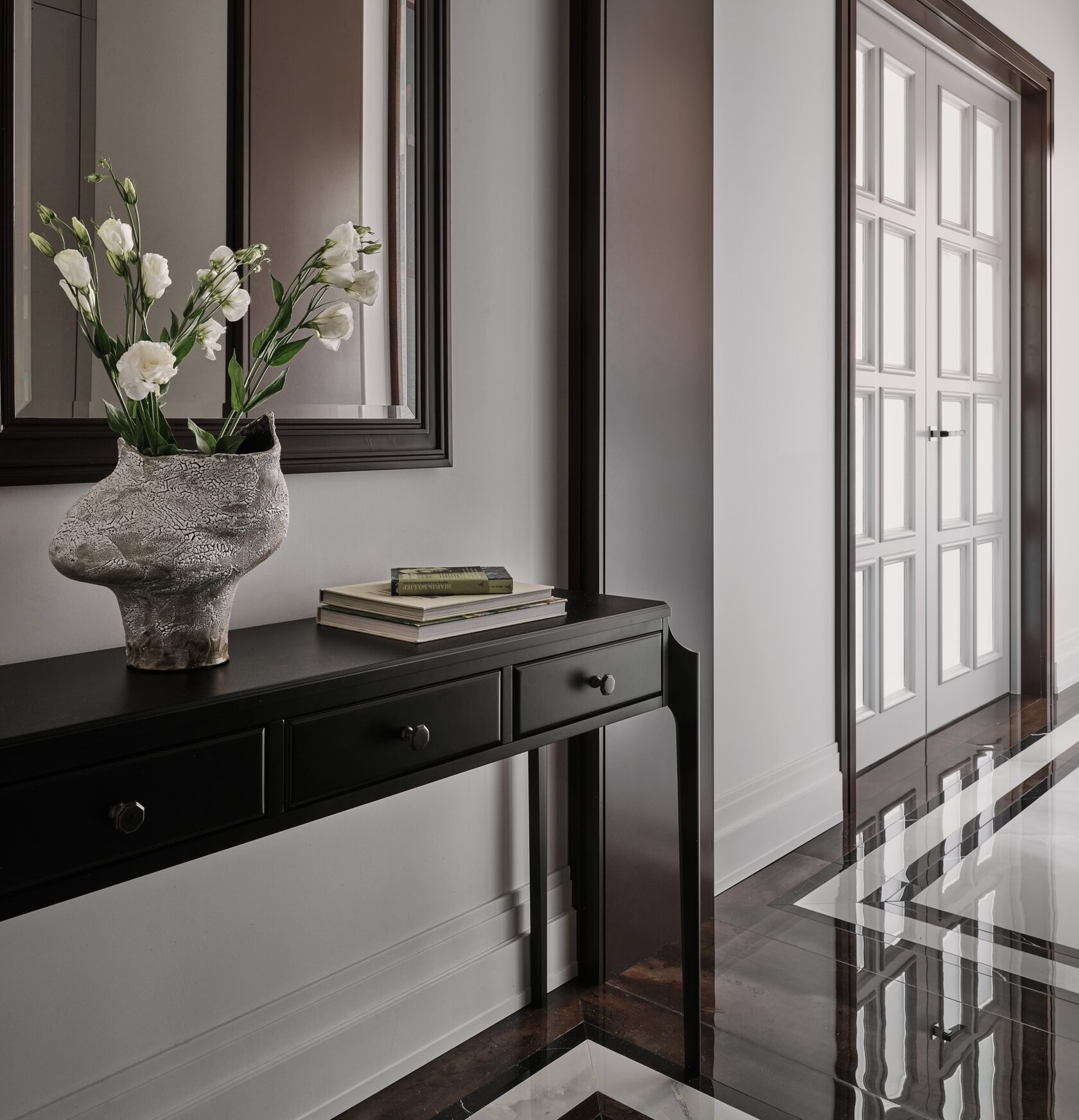 этот объект в стиле неоклассики настоящим произведением искусства. Он воплощает роскошь классических интерьеров, оставляя много пространства для движения